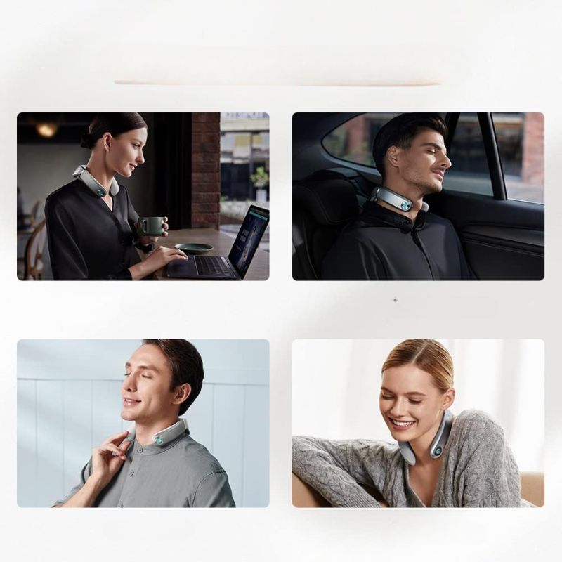 Dispozitivul oferă 4 moduri diferite de masaj și încălzire în 3 trepte terapeutică, concentrată pe partea superioară a coloanei cervicale, asigurând eficiență și confort maxim. Designul ergonomic și ultra-ușor (doar 170 g) permite să iei dispozitivul oriunde – confortabil de utilizat acasă, la birou sau în călătorii. Designul fără fir oferă libertate, iar bateria încorporată de 2400 mAh asigură până la 10 zile de funcționare cu doar 15 minute de utilizare zilnică.