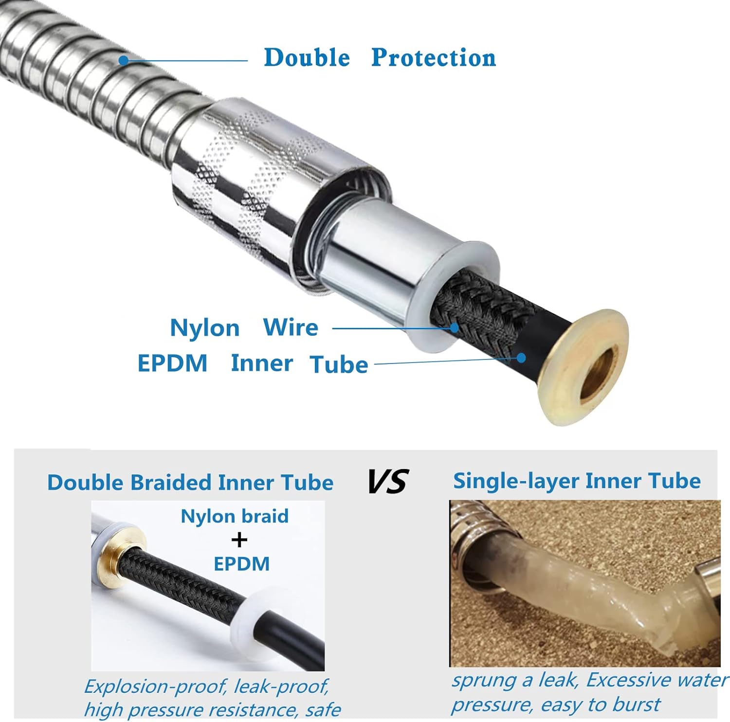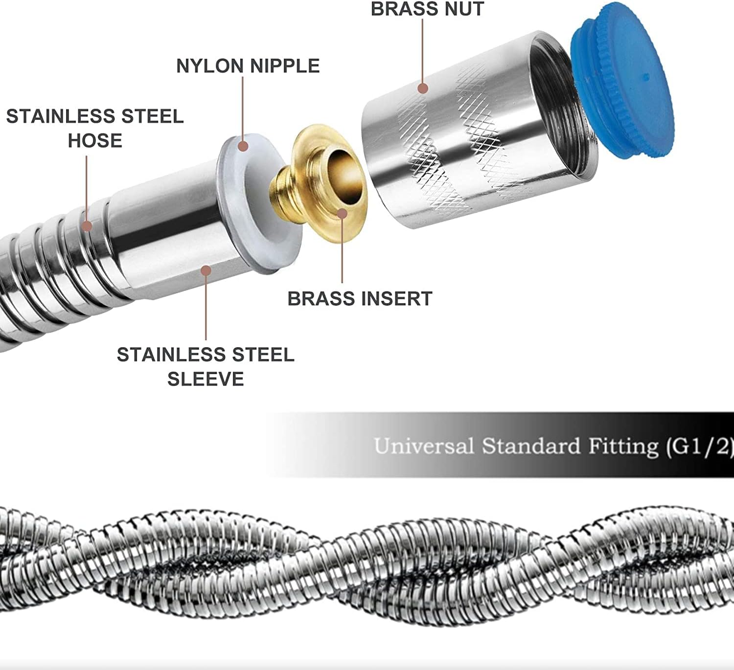 1 metrová chrómovaná sprchová hadica je ideálnou voľbou pre tých, ktorí hľadajú spoľahlivé a trvácne riešenie do svojej kúpeľne. Má prémiový vonkajší plášť z nehrdzavejúcej ocele a vnútornú hadicu s výpletom z EPDM + nylonu odolnú proti prasknutiu, ktorá odoláva každodennému používaniu a zaručuje dlhú životnosť. Vďaka tesnej dvojitej zámkovej konštrukcii nie je potrebná žiadna dodatočná tesniaca páska pri montáži, takže sa jednoducho a rýchlo pripojí k akémukoľvek štandardnému sprchovému hlavici.